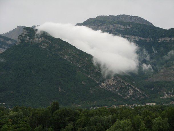 en rentrant du travail, cette fois je suis sortie de la voiture...après encore de la pluie, c'est ce qu'on appelle les nuages qui accrochent les montagnes....