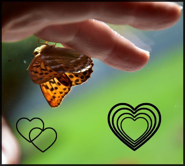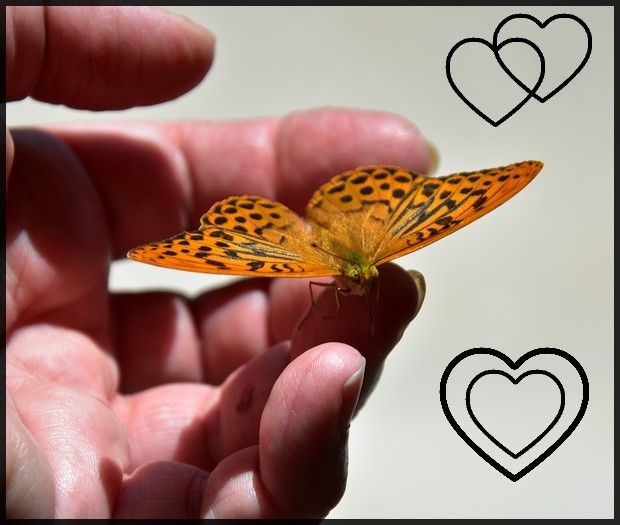 la fille d'une copine qui a une coccinelle sur les doigts, moi avec un papillon, des gestes tendres...![]()
