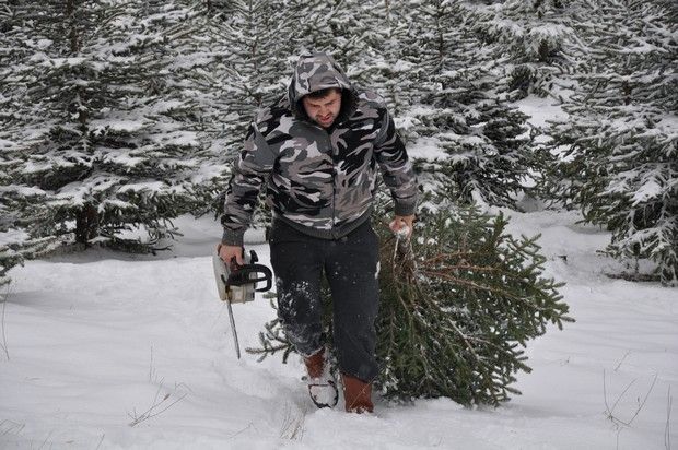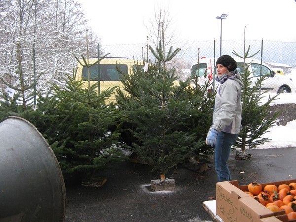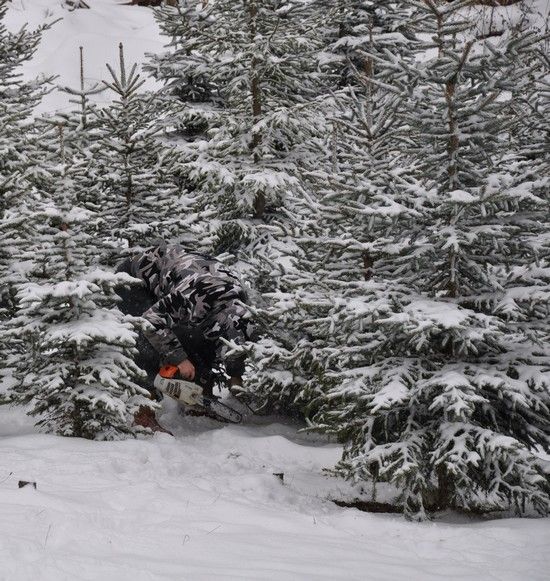 comme chaque année nous allons chercher notre sapin de Noël chez un producteur/agriculteur à environ 500 m de chez nous, c'est Thomas qui le coupe pour qu'il soit bien frais mais on est loin d'être en forêt vu qu'on est là juste dans une petite plantation/culture