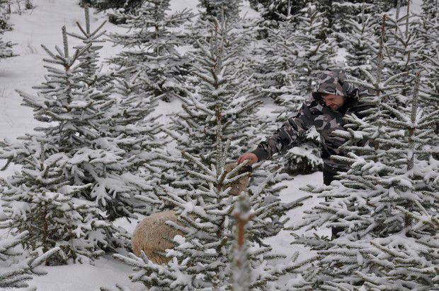 Thomas est parti à la recherche "du" sapin....pas facile avec la neige, alors il se promène entre eux, inspecte